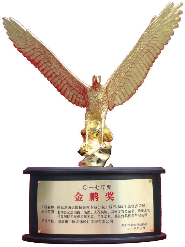 近日,代表深圳裝飾最高榮譽的2017年度深圳市裝飾工程“金鵬獎”評比揭曉,中航裝飾承建的深圳市羅湖區婦幼保健院改造工程、騰訊濱海大廈精裝修工程、領航城領尚華府精裝修工程三個項目獲獎。