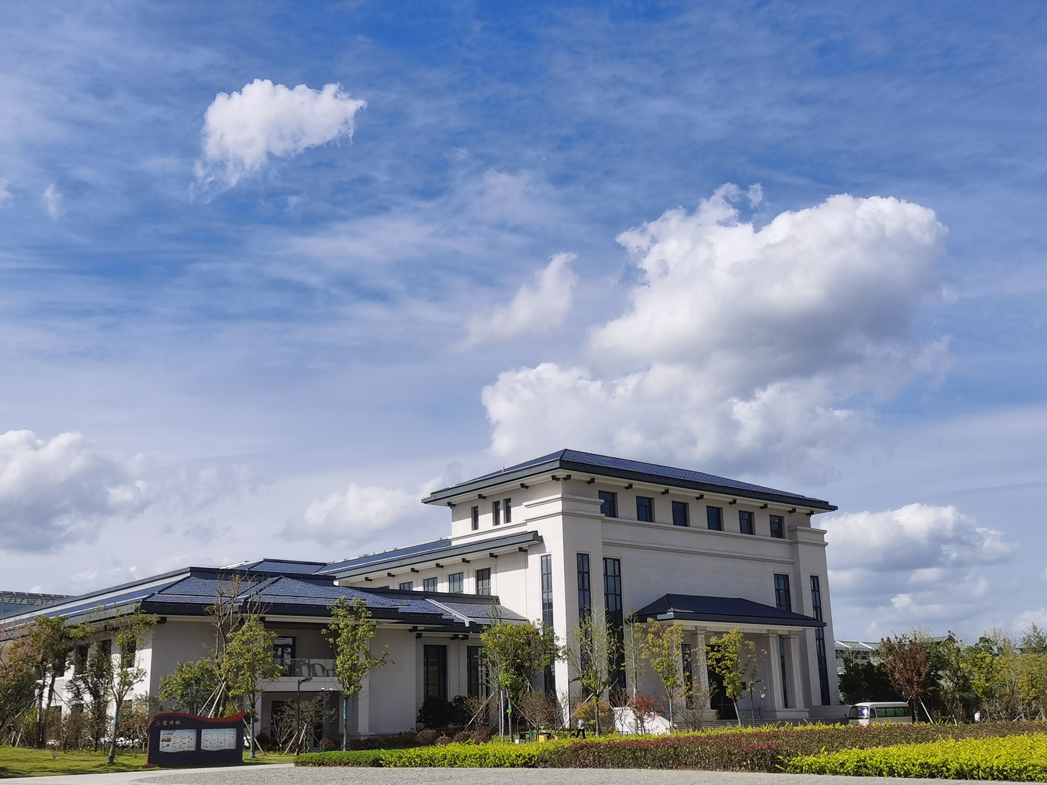 該項目位于寧波慈城新城,東至獅子山,南至慈南街,西至慈孝南路,北至慈水東街南側綠地,總建筑面積為105,000平方米。新建校區建有教學樓、會議中心、圖書信息樓、文體館、學員食堂、學員宿舍,地上建筑面積約8.6萬平方米,地下建筑面積約2萬平方米。校園整體布局以教學樓為主景建筑,兩側布置會議中心和圖書信息樓,圍合組成校園中心廣場,由北入口主軸延伸展示黨校莊重、嚴謹特殊的學習氛圍。