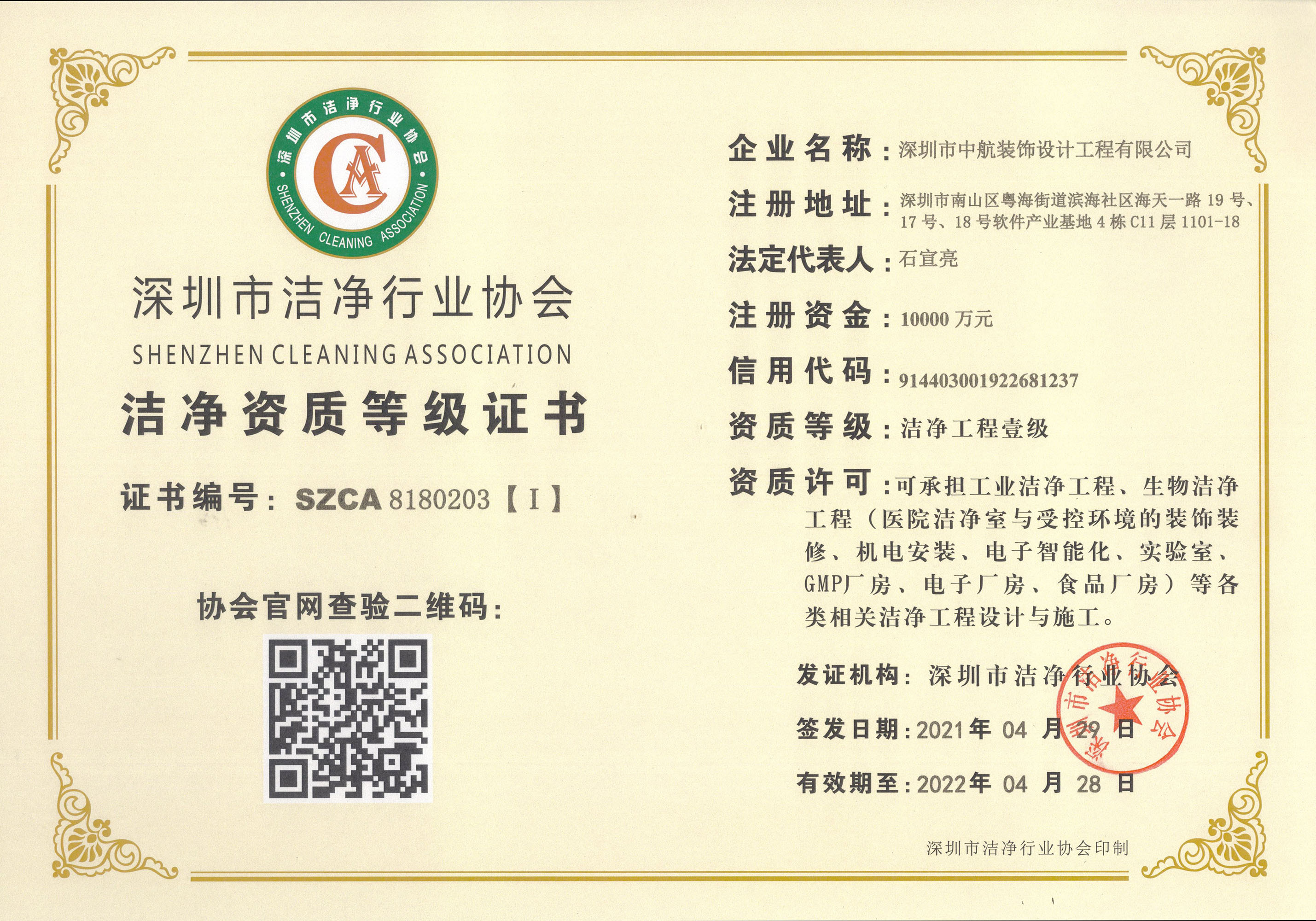 中航裝飾榮獲潔凈工程壹級(jí)資質(zhì)