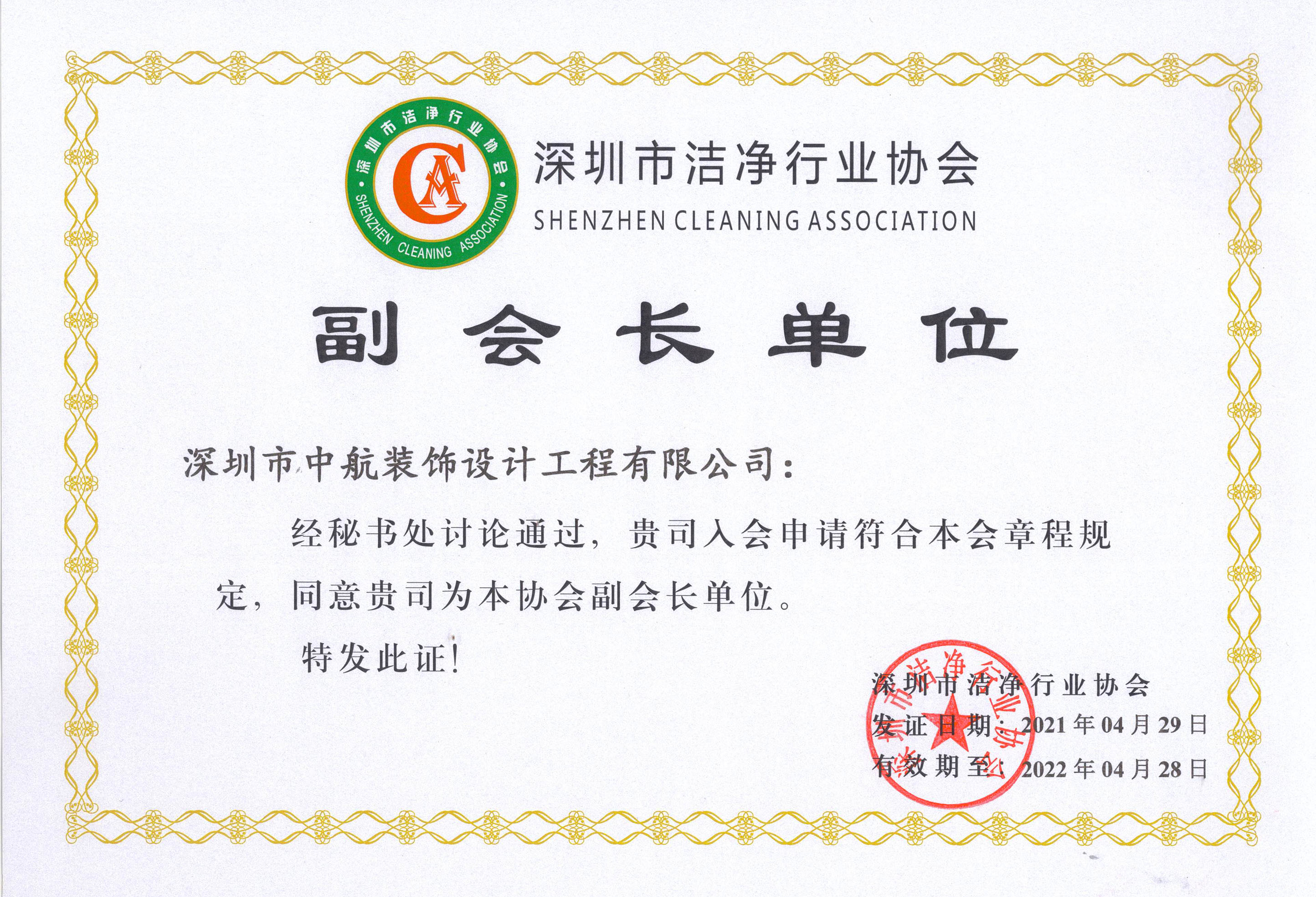 ? ? ? ?近日,中航裝飾集團(tuán)喜獲深圳市潔凈行業(yè)協(xié)會(huì)頒發(fā)的潔凈工程壹級(jí)資質(zhì)證書,并被授予協(xié)會(huì)副會(huì)長(zhǎng)單位。
