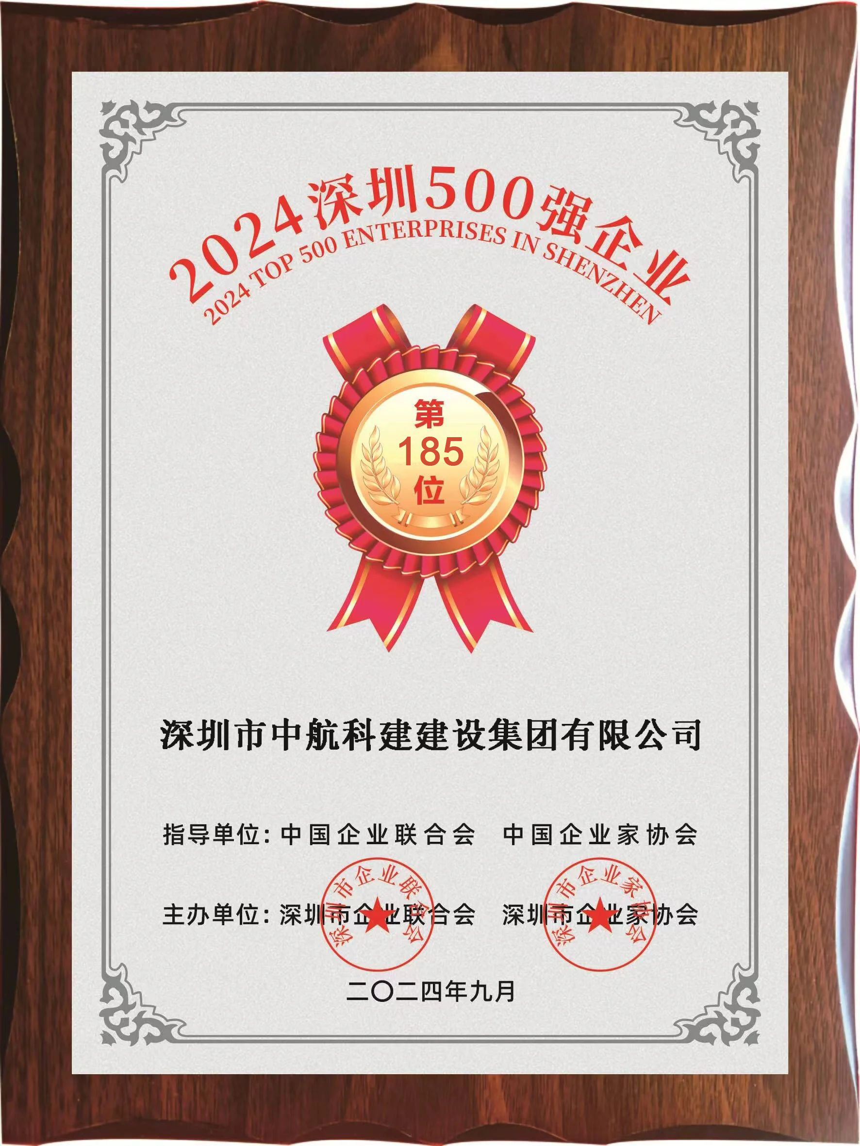 中航科建榮登2024深圳企業(yè)500強(qiáng)榜單第185位