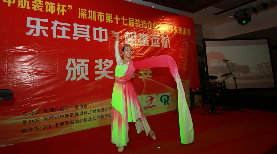? ? ? ?精彩的比賽結(jié)束后,熱鬧友好的氣氛一直延續(xù)到晚上,大家歡聚一堂,頒獎晚宴在精彩的節(jié)目表演中開始。深圳裝飾行業(yè)協(xié)會會長高剛致辭盛贊此次邀請賽的成功,對前來參與的行業(yè)精英表示感謝和對獲獎?wù)弑硎咀YR,并就此次裝飾行業(yè)“營改增”政策應(yīng)對問題做了分析與強調(diào)。接下來,在歡歌笑語中頒發(fā)了本次賽事的各項獎杯與獎品,其中激動人心的抽獎環(huán)節(jié)更是將晚宴氣氛一次一次的推向高潮。