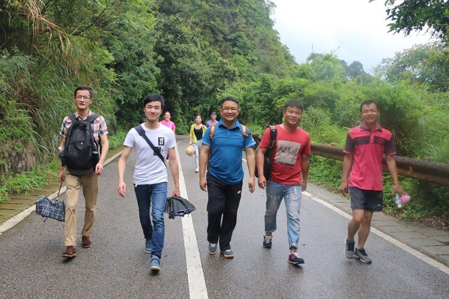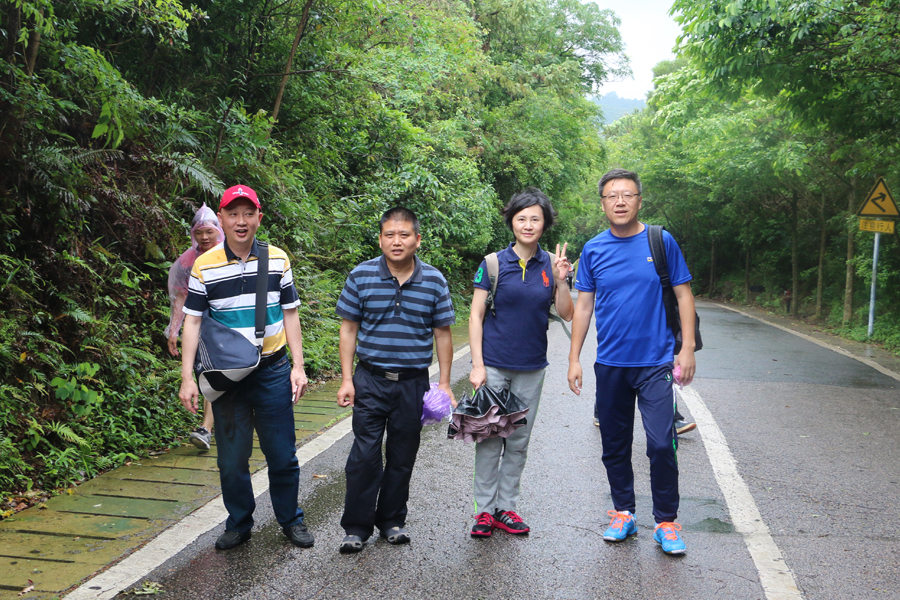 首夏猶清和,芳草亦未歇。深圳的五月,陽光正好,微風(fēng)不燥。中航裝飾集團(tuán)的小伙伴們就在這惠風(fēng)和暢的天氣里向深圳最高峰——梧桐山發(fā)起了挑戰(zhàn)。雖然上午剛到山底就飄了點(diǎn)小雨,但大家登山的熱情不減,情緒高昂。石英董事長更是一馬當(dāng)先,帶領(lǐng)大家沿著逶迤盤旋的山路,穿過蔭翳的林木,向山頂一路攀登。雖然道路曲折漫長,但是沿途風(fēng)景優(yōu)美,為增加本次活動的趣味性與挑戰(zhàn)性,我們更是事先在沿途放置了一些卡紙,在活動中增加了“尋寶”游戲,讓大家在爬山的過程中,體會尋寶的樂趣。大家樂此不彼,在不斷尋找的過程中似乎也忘記了一路攀登的辛苦。一路上,大家相互扶持鼓舞,以堅(jiān)定的信念、頑強(qiáng)的毅力不斷往上攀登,挑戰(zhàn)每一個臺階,每一段路途,朝著山頂目標(biāo)勇敢的前進(jìn)。當(dāng)站在鵬城第一峰的山頂,迎著晨暉,眺望遠(yuǎn)方,因天氣原因,能見度不高,少了海闊天空,一覽眾山小之感,但頗有鳳兮來儀、飄飄欲仙之意。稍事休息后,我們就開始下山了,下山途中大家也是互相扶持,秉持著不落下一個隊(duì)友的原則,順利返回山底,在山底的農(nóng)家樂餐館用了晚餐。