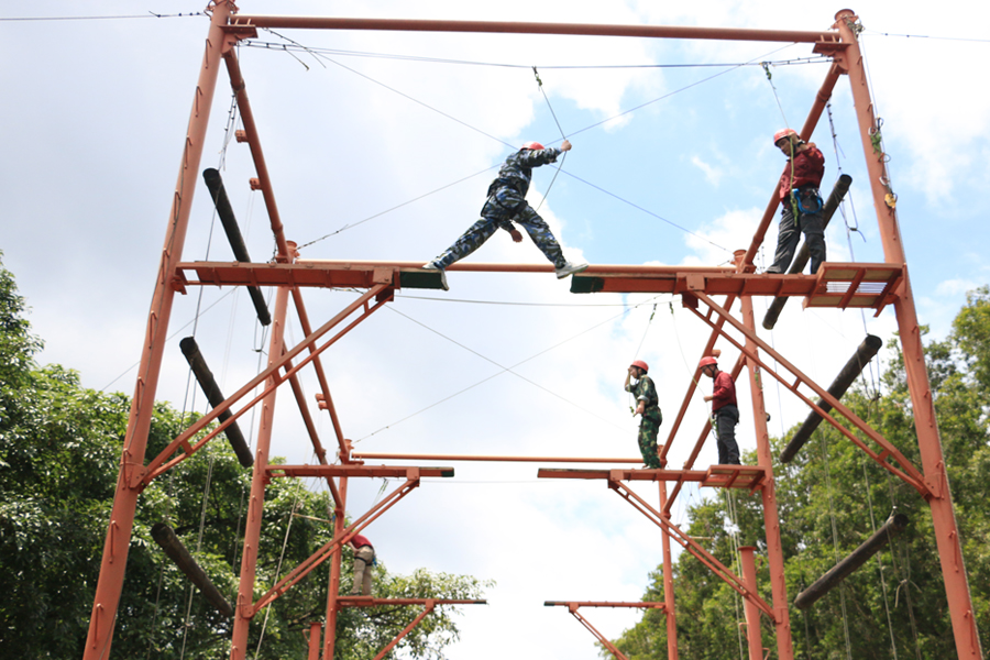 抵達目的地,換上迷彩服,在教練鏗鏘有力的號令聲中拓展訓練正式開始。為了拉近參訓人員之前的距離并增進感情、打破員工之間的隔閡,第一個項目是破冰。所有參訓人員在教官的指揮下,通過一個個具有啟迪啟發作用的游戲,不僅迅速地讓參訓人員身心放松,亦達到了運動前熱身的效果。