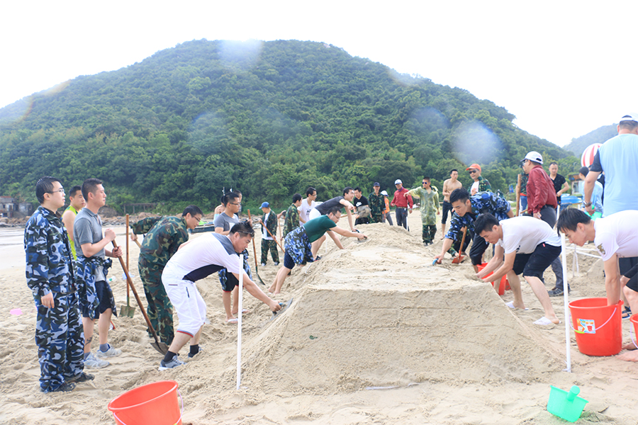 最后,隨著中航裝飾沙雕的完美塑成,為期兩天的活動也接近尾聲,我們歡呼雀躍,我們席地而坐,我們分享了兩天的感受,這些都不是文字就能表達的感悟,因為我們深深地知道這不僅是個人綜合素質的鍛煉,更是充實熔煉團隊的精神糧食。通過此次活動,中航團隊的凝聚力和集體榮譽感倍增,正如活動最后孫玉東總經理總結的那樣“一個有為的團隊需要這樣的凝練,只有充分凝聚每個人的力量,中航裝飾才能更大更強,我們要把拓展訓練中的體會和感悟切實應用到今后的工作中,使自己充分融入到中航裝飾的團隊之中,讓每個員工都成為強大中航裝飾的一份子!”
