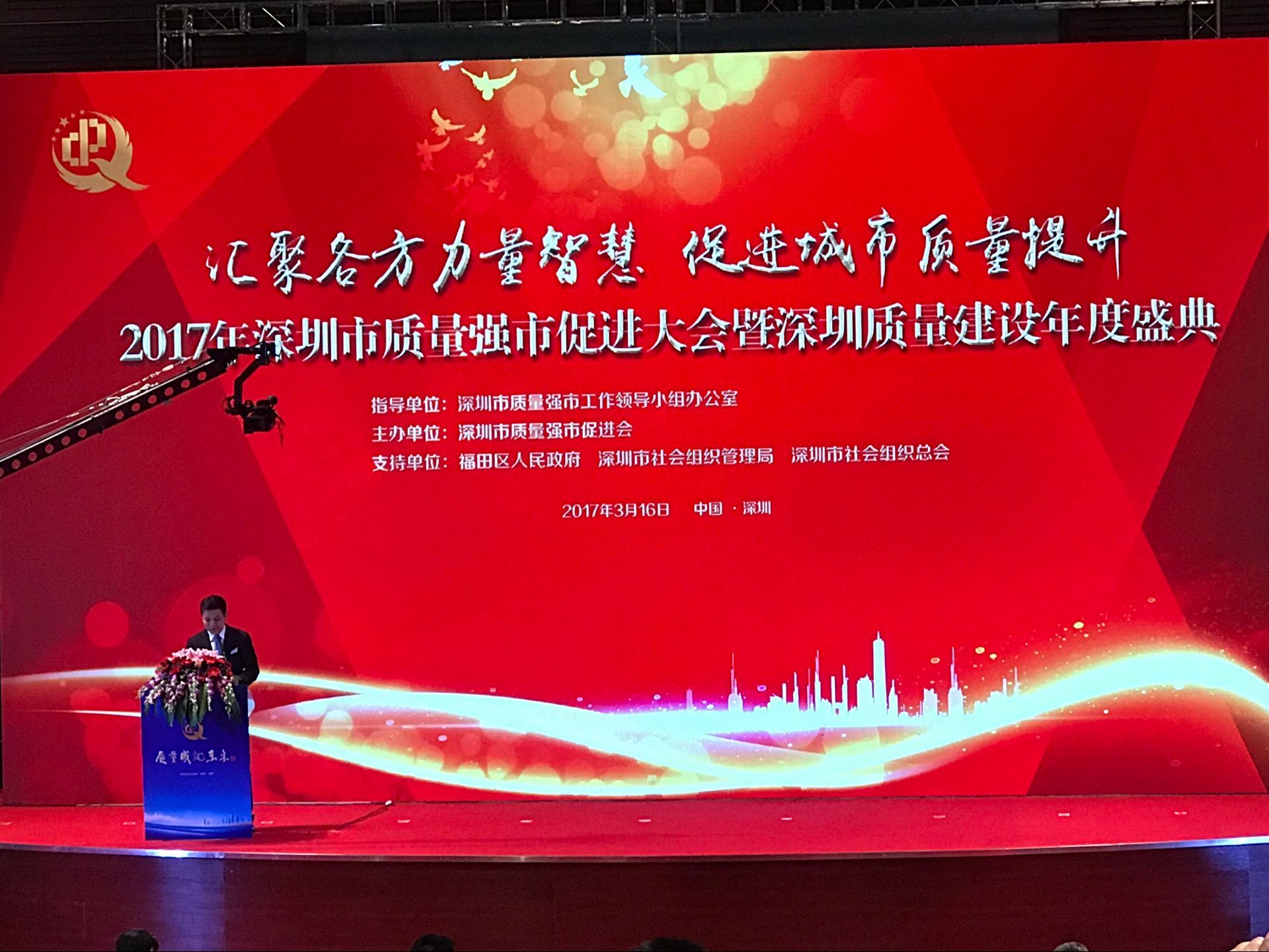 為進一步培育質量工匠人才,3月16日,以“匯聚各方力量智慧,促進城市質量提升”為主題的2017年質量強市促進大會暨深圳質量建設年度盛典在深圳召開,中航裝飾集團作為會員單位受邀參加了本次大會,并參與了促進會本次換屆選舉投票”。